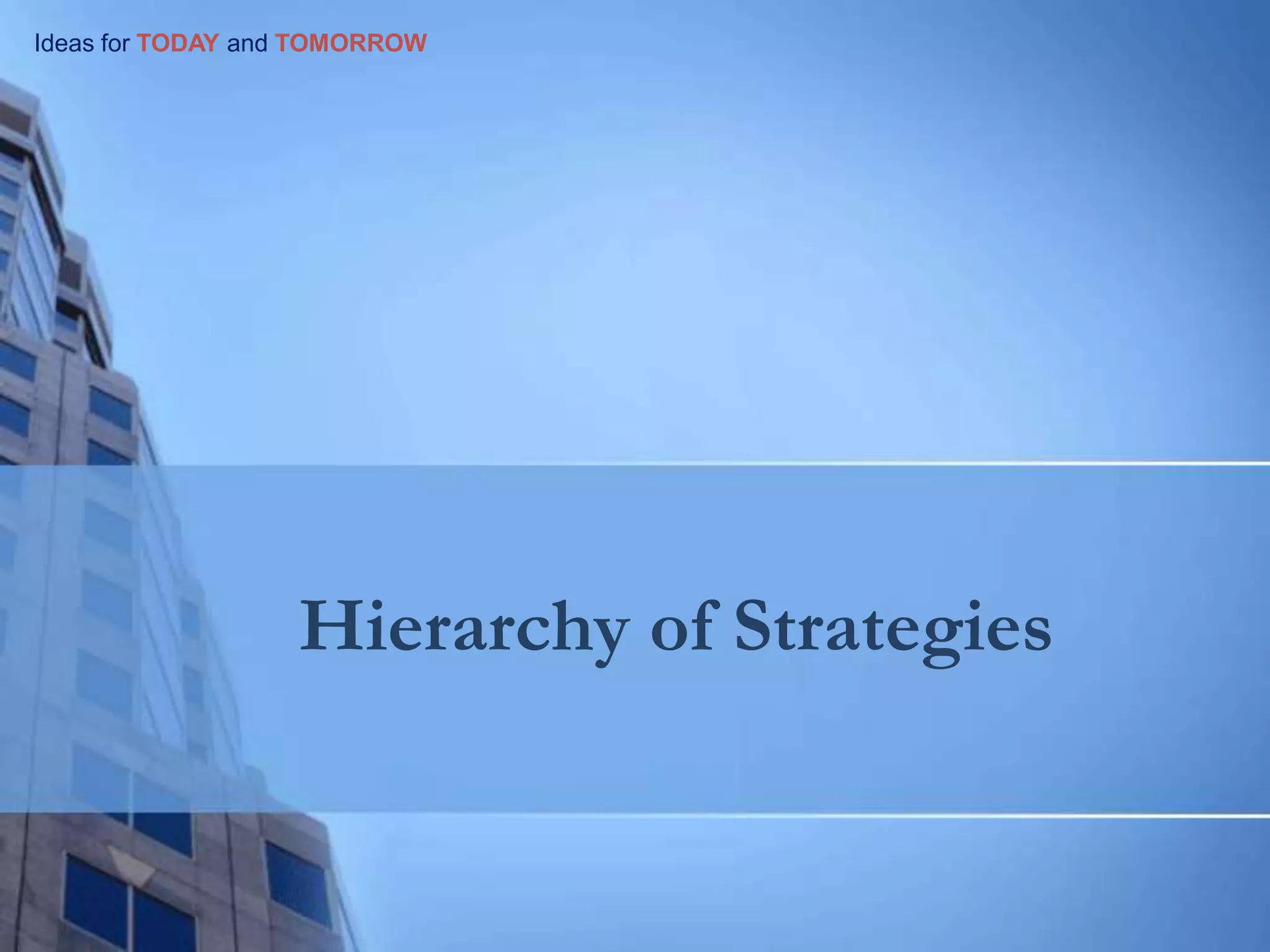 The document outlines the hierarchy of strategies used in strategic management. It discusses corporate level strategies that affect the whole organization, business level strategies that gain competitive advantage in specific markets, and functional level strategies for different departments. Functional strategies include operational strategies for quality and production, financing strategies for funds management, marketing strategies for segmentation and promotion, and human resources strategies for recruitment and compensation.