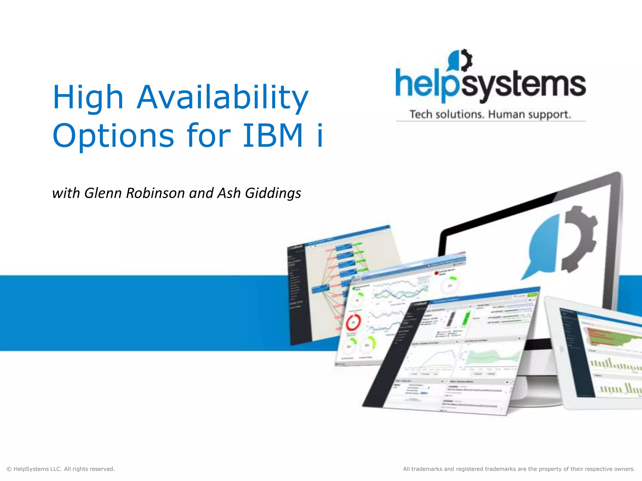 The document provides a comprehensive overview of high availability options for IBM i systems, discussing various methods such as logical replication, PowerHA geographic mirroring, and storage-based replication. It outlines the pros and cons of each option, including operational requirements and impacts on system performance. The content emphasizes assessing needs on a case-by-case basis to determine the most suitable solution for ensuring system uptime and data integrity.
