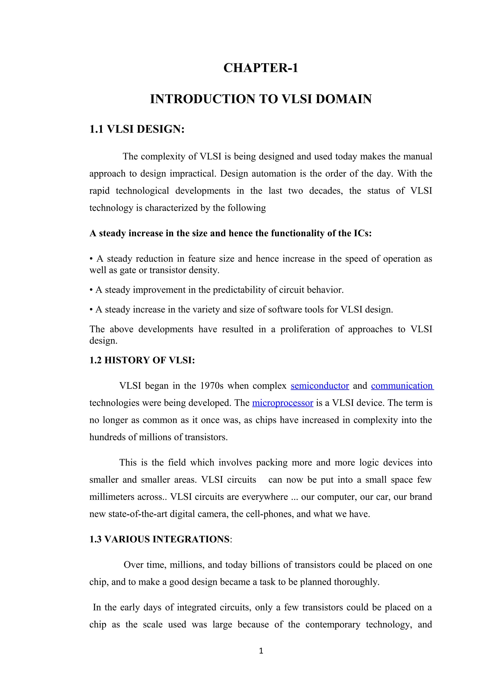 The document discusses VLSI design and a high-speed parallel multiplier project. It begins with an introduction to VLSI design including its history and various integrations from SSI to VLSI. It then provides an overview and motivation for the multiplier project. The project aims to implement efficient high-speed multiplication using Booth encoding, Wallace tree adders, and carry look-ahead adders to reduce the number of partial products and accelerate their accumulation. The document outlines the organization of the project report and chapters on Booth algorithms, Wallace trees, and carry look-ahead addition.