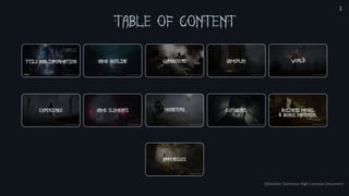 This document provides an overview and outline for the high concept action RPG game "Expels". The summary includes: