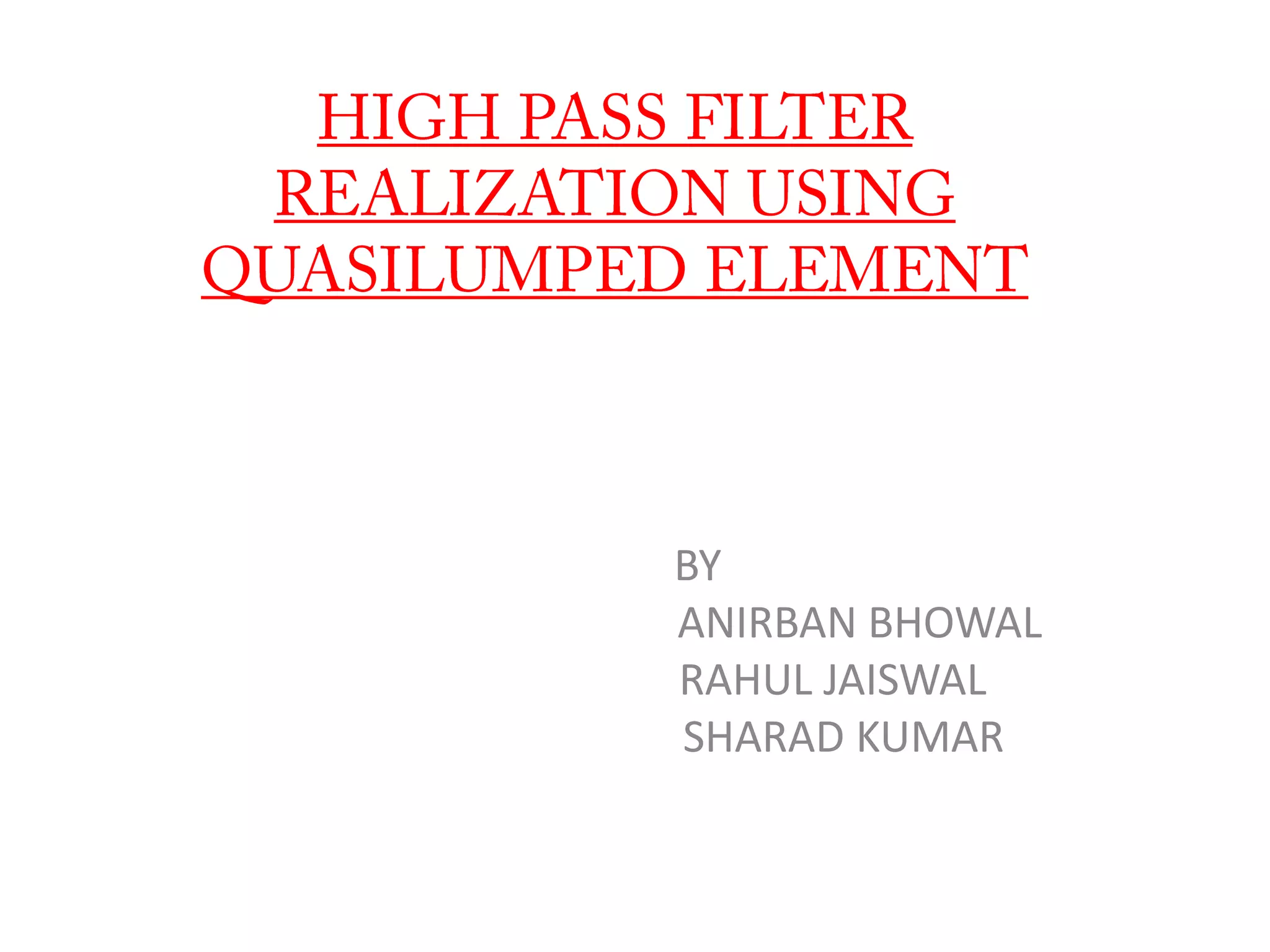 This document discusses the design of quasilumped element high-pass filters using microstrip lines. It explains that microstrip short sections and stubs whose length is less than a quarter wavelength can approximate lumped elements. These are called quasilumped elements. It then provides the ABCD matrix for a transmission line and discusses how a high-pass filter can be designed by transforming the element values of a low-pass filter prototype using a frequency mapping equation. An example is given of designing a high-pass filter with specific parameters using a Chebyshev low-pass prototype filter.