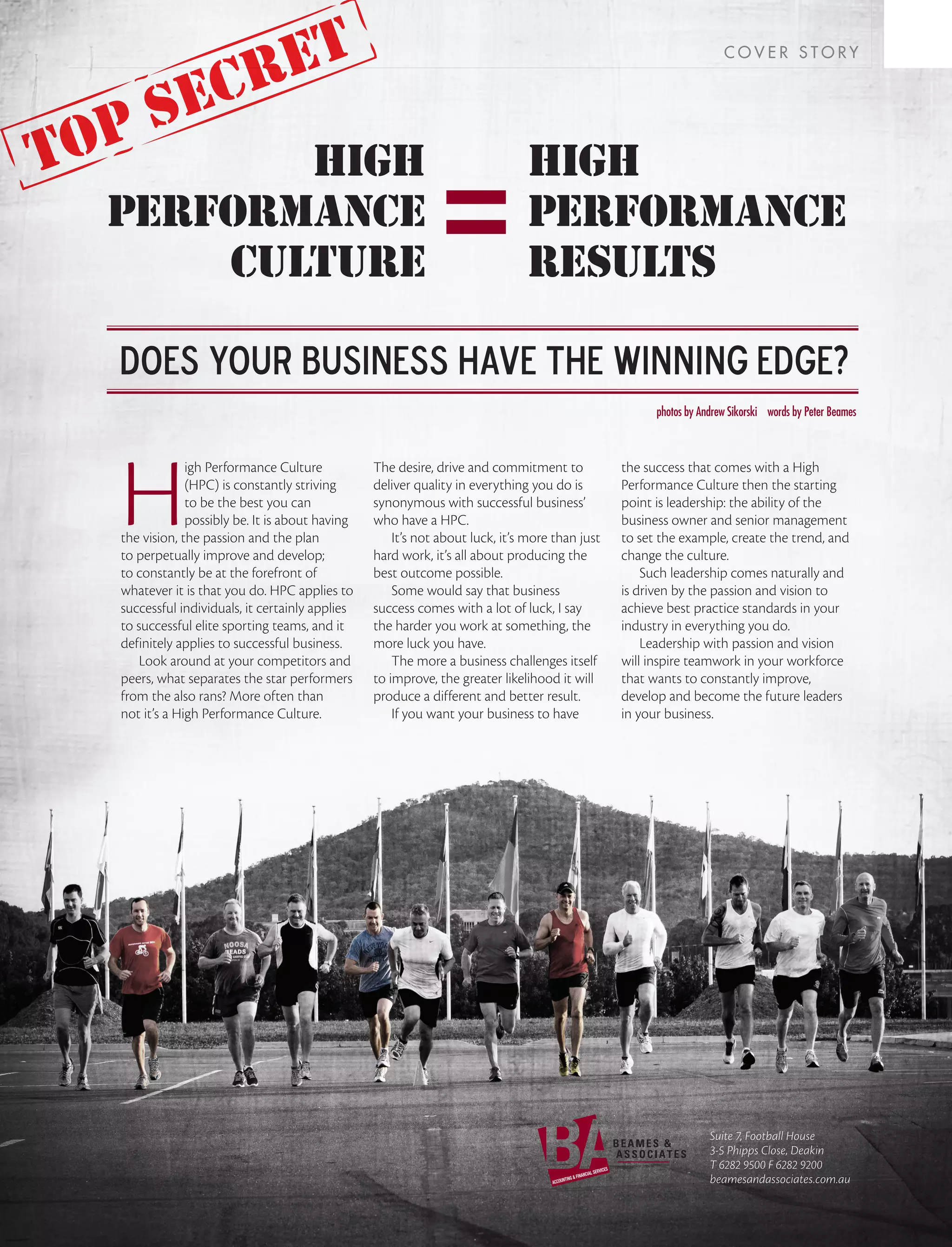 The document concludes by providing a checklist for business owners to assess if they have a high performance culture and identifies steps to develop one, which can double business results. Implementing a high performance culture requires setting goals, challenging yourself and your team