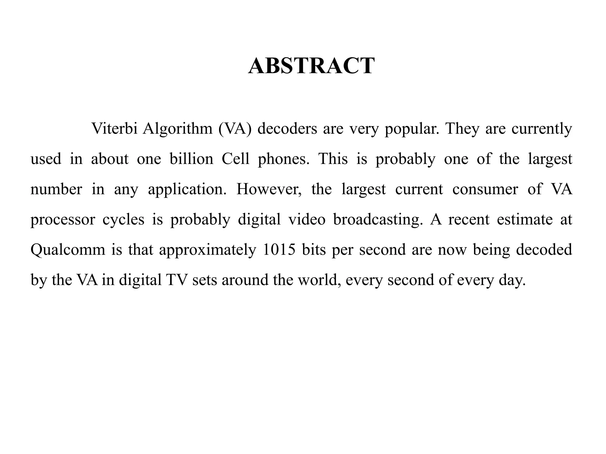 This document discusses a design for a high-speed, low-power Viterbi decoder using a pre-computation architecture that integrates a T-algorithm to minimize power consumption without sacrificing decoding speed. The introduction of the proposed architecture aims to effectively reduce power while maintaining performance, particularly for applications like digital video broadcasting. Additionally, it reviews existing literature on low-power Viterbi decoders and presents design considerations and benefits.