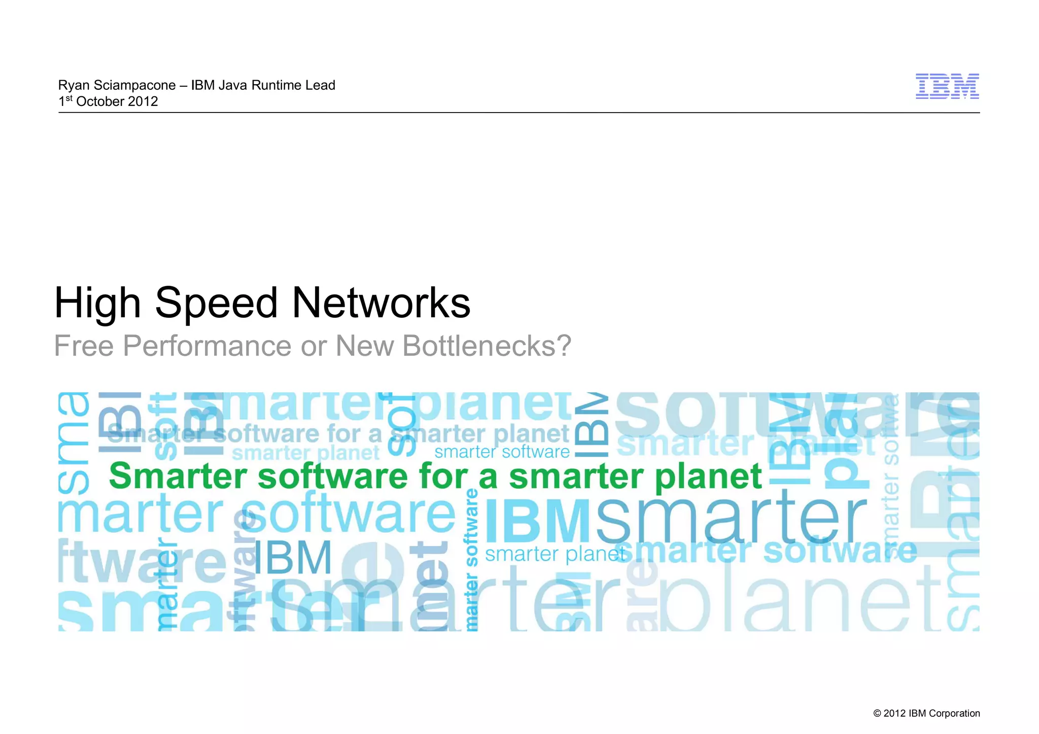The document discusses high-speed networks and their performance implications for Java development. It summarizes the results of tests comparing the throughput of C and Java programs when sending data over different network types, including InfiniBand and its protocols. The tests found that for small payloads, the C programs generally had higher throughput than the Java programs. But as payload sizes increased above around 128KB, the throughput of the Java programs approached that of the C programs. The document also discusses challenges for Java in exploiting features like remote direct memory access over high-speed networks.