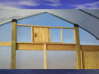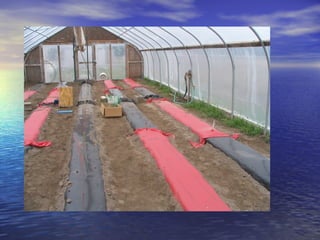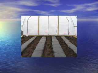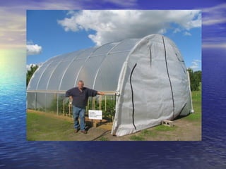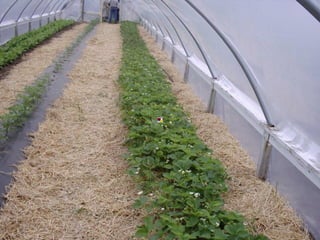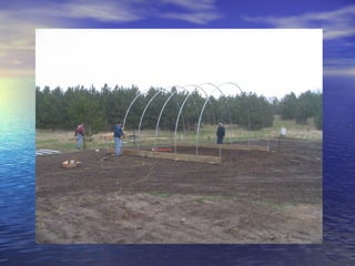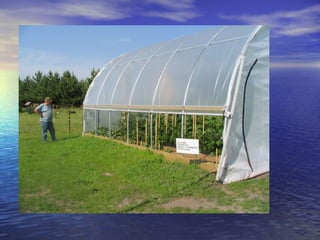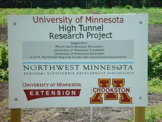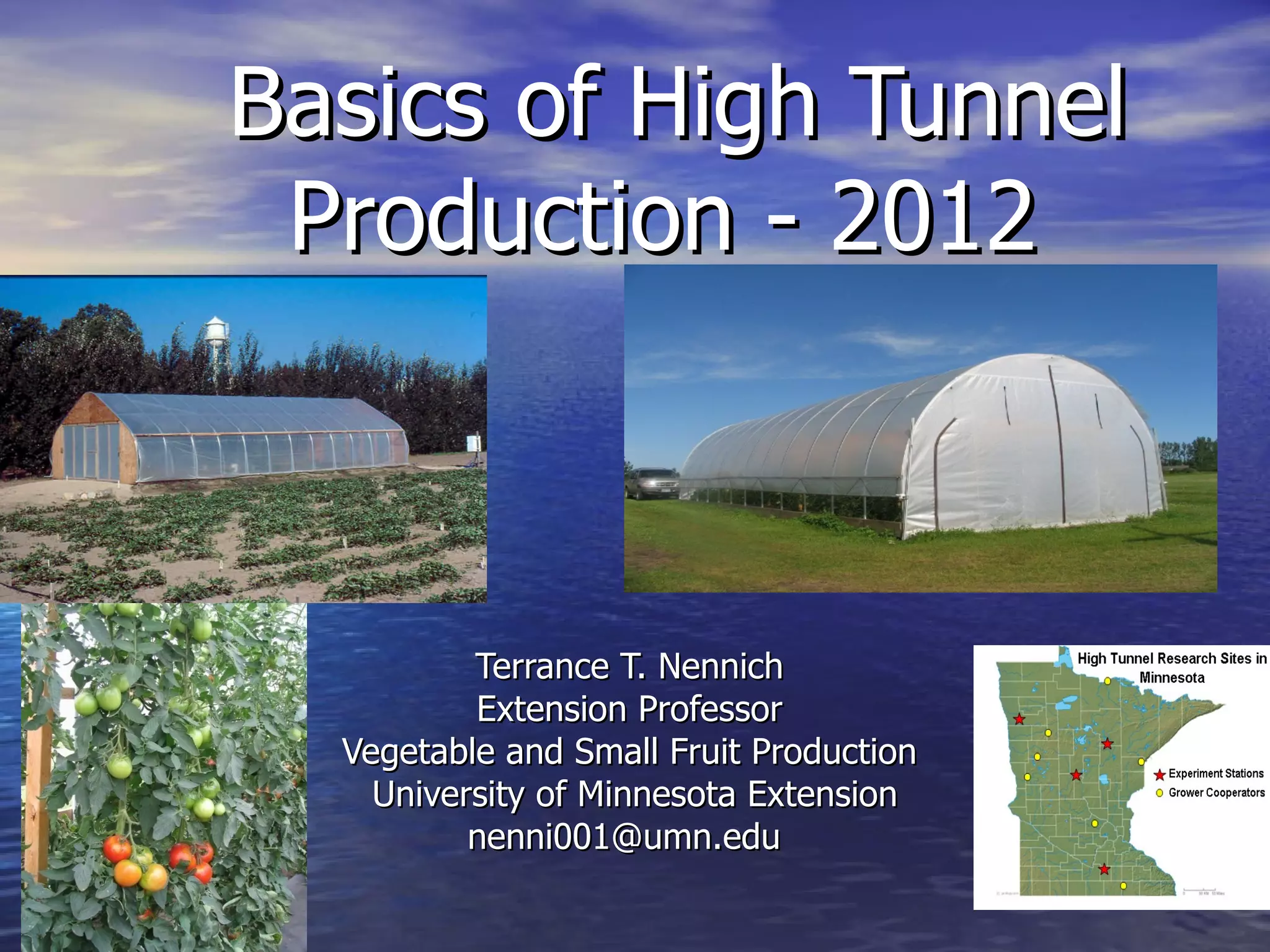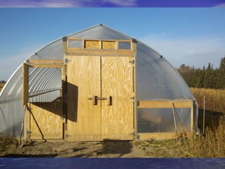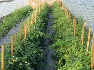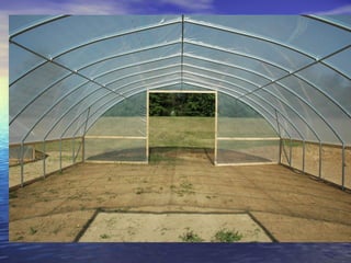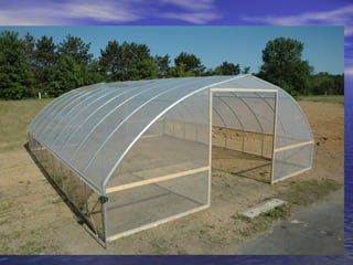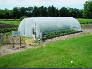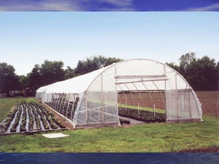 - High tunnels are unheated structures that resemble greenhouses and allow crops to be grown earlier and later than outside by utilizing the natural heat gain inside the structure. They provide advantages like earlier and later production, higher yields, natural pest and disease control.