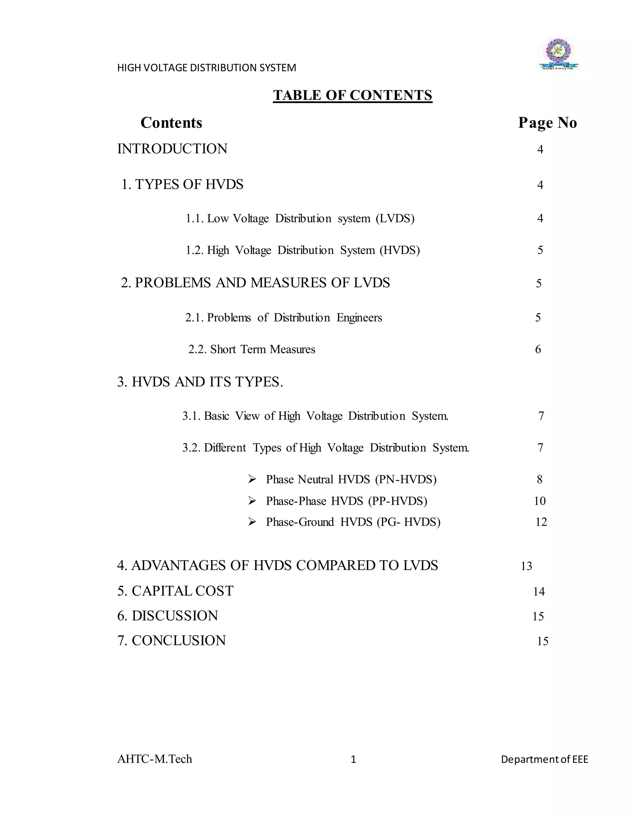 The document discusses high voltage distribution systems (HVDS) as an alternative to traditional low voltage distribution systems (LVDS). It outlines three main types of HVDS - phase-neutral, phase-phase, and phase-ground - and describes their components and configurations. HVDS is presented as a technically superior option to LVDS, offering benefits like lower line losses, improved voltage profile, reduced theft and failures. Restructuring an existing LVDS network to HVDS could result in power loss reductions of 25-80% and payback periods of around 18 months, making it a viable option.