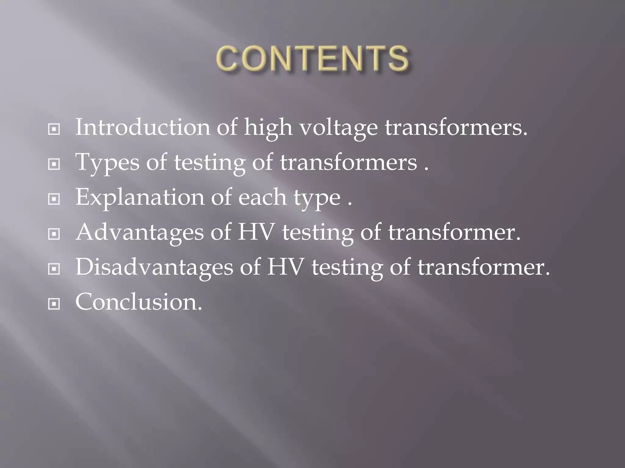 This document discusses high voltage transformers and the various types of tests performed on transformers. It describes partial discharge testing, insulation resistance testing, and routine testing. Partial discharge testing detects localized breakdowns in insulation under high voltage stress. Insulation resistance testing measures insulation quality. Routine testing confirms operational performance and checks for manufacturing defects. The document outlines advantages like safety, efficiency, and failure detection, and disadvantages like insufficient oil level and overloading.