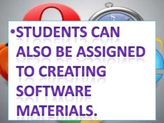 The document discusses using IT-based projects to develop higher-order thinking skills. It explains that the teacher creates a learning environment and provides students with tools and resources, acting as a facilitator. Students are presented with a problem and use various information sources to organize their findings in response. Traditional learning focuses on factual information from textbooks, while resource-based learning emphasizes the inquiry process using diverse sources. IT-based projects involve defining tasks, brainstorming ideas, evaluating concepts, taking action, and remaining flexible.