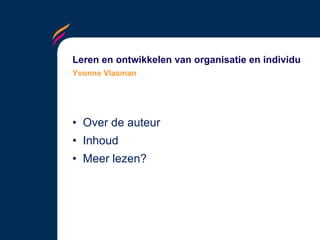Leren en ontwikkelenvan organisatie en individu Yvonne Vlasman • Over de auteur • Inhoud • Meer lezen?