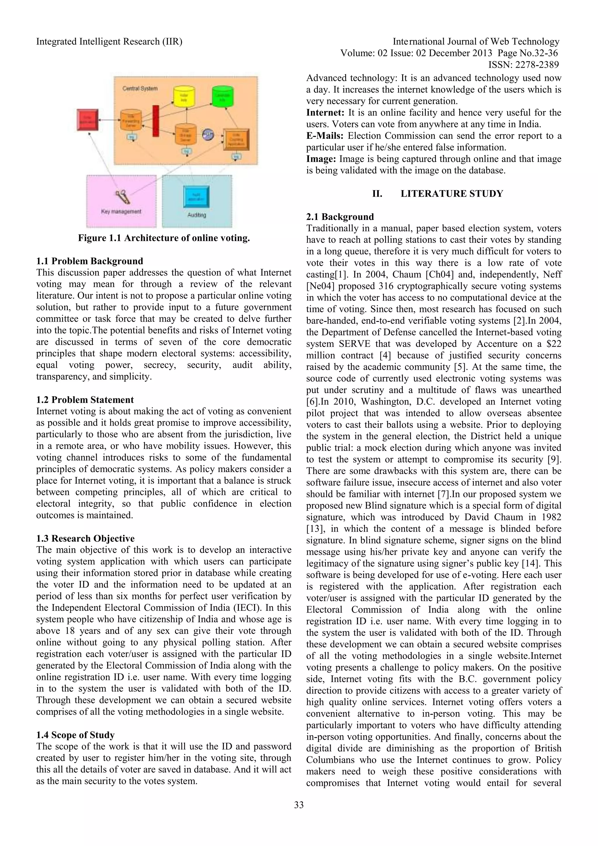 The paper proposes a highly secure online voting system aimed at Indian citizens over 18 years old, allowing them to vote without physical polling stations. It emphasizes the need for security, accessibility, and reliability in e-voting, addressing concerns over current voting methods and implementing advanced technologies such as biometric image verification. The proposed solution aims to increase voter participation and mitigate election fraud through a user-friendly online interface where authentication is based on personal identification and facial recognition.