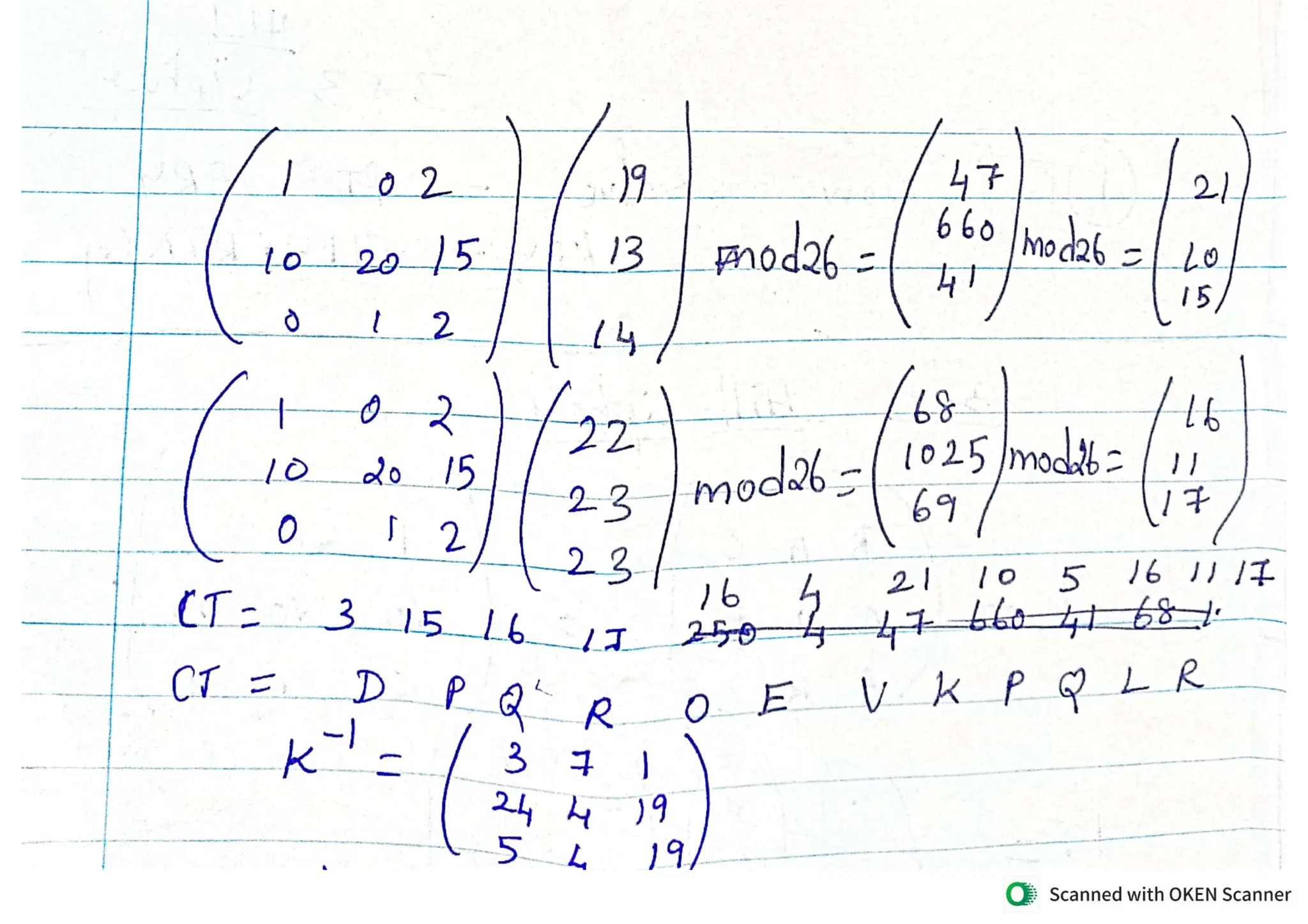 Hill Cipher-Three cross Three Matrix Encryption and Decryption step by step procedure