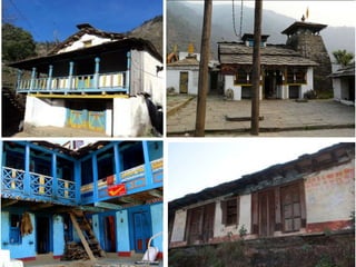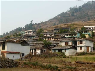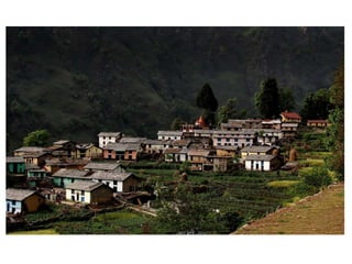 Settlements in the hilly areas of Uttarakhand face unique challenges. A group of students studied settlements in the hilly regions and identified issues around infrastructure, transportation, agriculture and education. The report summarizes their findings on the difficulties faced by communities in the mountains.