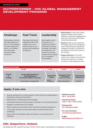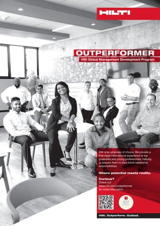 Hilti offers a global management development program designed for recent top graduates and young professionals aiming to accelerate their careers. The 24-month program provides international placements, project assignments, and mentorship from senior leaders, fostering personal and professional growth. Interested candidates must apply between April 3 and July 30, 2016, with assessments taking place in Dubai at the end of August.
