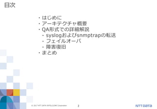 Hinemosは、システム運用管理で要求される各種機能を備えた、「統合運用管理ソフトウェア」です。 本資料は、2017年11月8日(水) / 15日(水)開催 Hinemos World 2017『Hinemosミッションクリティカル機能アーキテクチャとその信頼性』セッション講演資料となります。