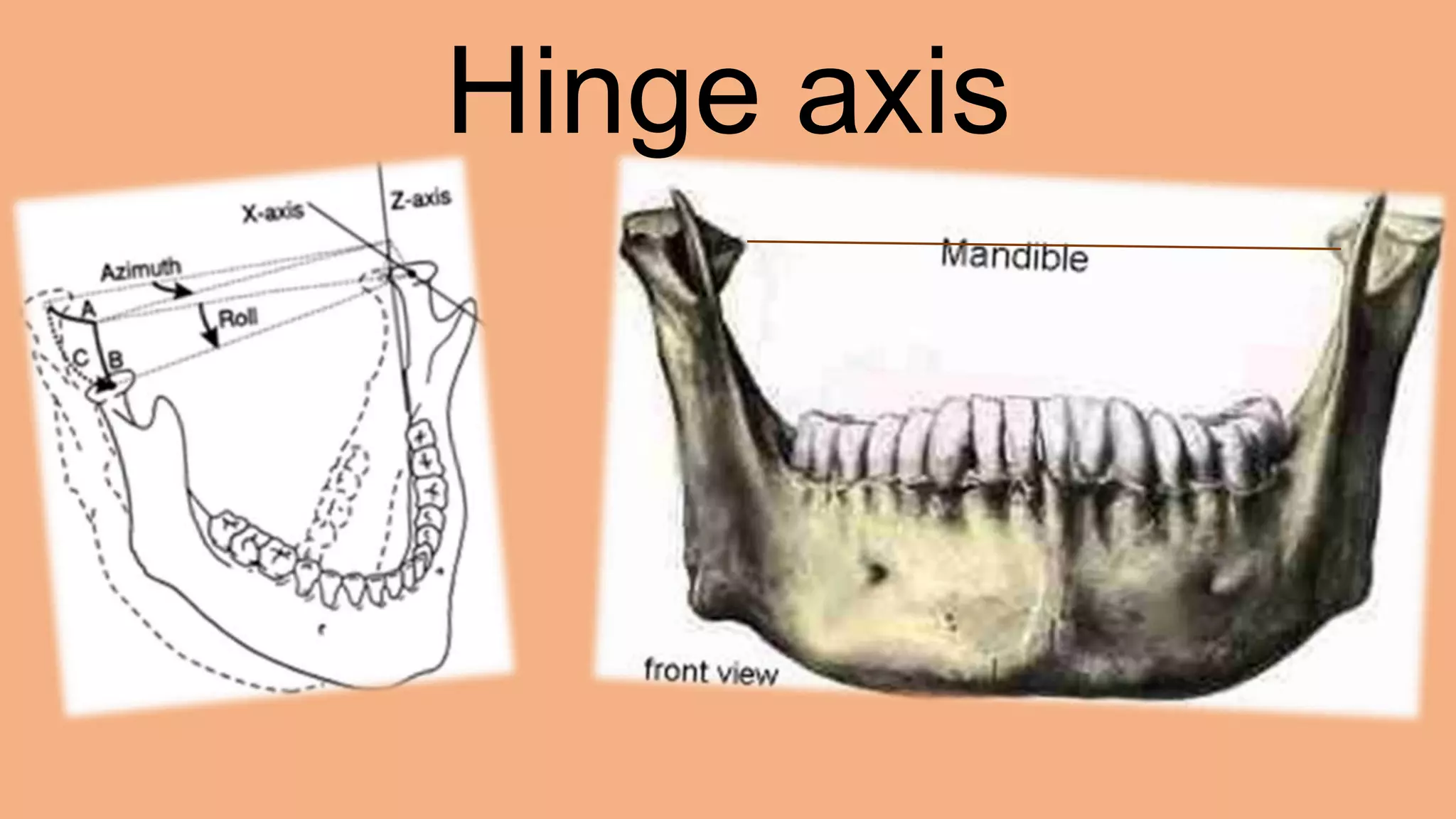 The hinge axis is an imaginary line around which the mandible rotates in the sagittal plane. There are various theories on the location and nature of the hinge axis. Methods to locate it include arbitrary, kinematic, and modified techniques. Locating the hinge axis clinically is important for correctly recording centric relation and transferring jaw movements to an articulator. However, there are many patient and recording system variables that can affect the accuracy of hinge axis location.