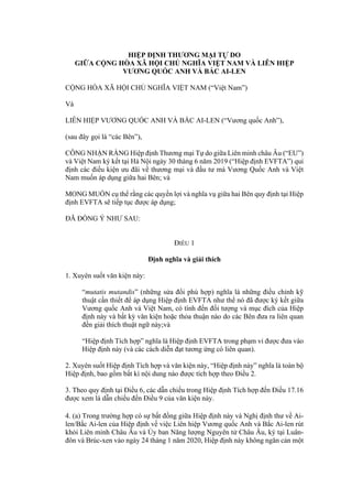 Hiệp định thương mại tự do giữa Việt Nam và Vương quốc Anh tích hợp các điều khoản của Hiệp định EVFTA, để duy trì và điều chỉnh các quyền lợi, nghĩa vụ thương mại giữa hai bên. Hiệp định này sẽ có hiệu lực sau khi hoàn tất thủ tục pháp lý cần thiết và bao gồm các điều khoản về hạn ngạch thuế quan đối với gạo và các điều chỉnh liên quan đến các hiệp định trước đó. Các bên cũng đảm bảo rằng quyết định của ủy ban thương mại sẽ tiếp tục được áp dụng và thực hiện trong khuôn khổ hiệp định này.