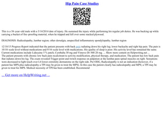 Current medications include Lidocaine 5 % patch, Cymbalta 30 mg and Vimovo Dr 500–20 mg. ... Show more content on Helpwriting.net ...