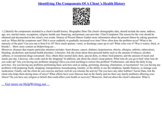 1.2.Identify the components included in a client's health history. Biographic Data–The client's demographic data, should include the name, address,
