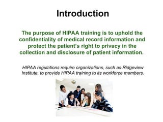 Institute, to provide HIPAA training to its workforce members.