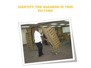 The document discusses hazard identification, risk assessment and determining controls (HIRADC) methodology as required by OHSAS 18001. It covers topics such as identifying hazards, assessing risks using a likelihood and severity matrix, and establishing control measures based on a risk control hierarchy. The objectives of HIRADC include compliance with legal requirements, prevention of injury and ill health, and continual improvement of occupational safety and health management systems.