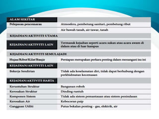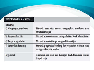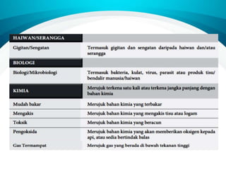 Dokumen ini membincangkan pengenalan kepada pengenalpastian bahaya, penilaian risiko dan kawalan risiko (HIRARC) berdasarkan keperluan undang-undang. Ia menjelaskan proses HIRARC untuk mengenal pasti, menilai, dan mengawal bahaya di tempat kerja bagi melindungi keselamatan dan kesihatan pekerja. Komponen utama termasuk pengenalpastian bahaya, penilaian risiko, kawalan risiko, dan proses semakan yang berkala.