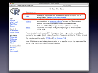 • Windows:: http://cran.ism.ac.jp/bin/windows/base/
