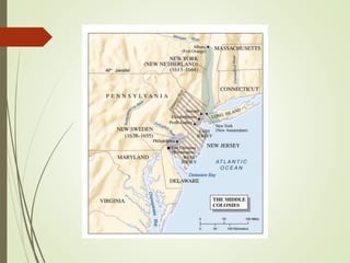 - The Carolinas and middle colonies of New York, New Jersey, Pennsylvania, and Delaware were also established in the 17th
