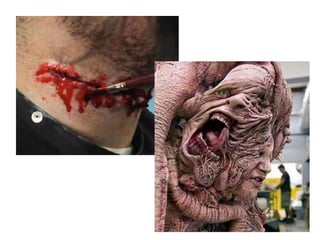 The document discusses the history and evolution of horror movies from their origins in novels and early films to modern times. It notes that some of the first horror films were produced in the late 19th/early 20th century by directors like Edison and Melies. Mary Shelley's Frankenstein novel was adapted into the first full-length horror film in 1910. Over the years, iconic directors and franchises have pushed the genre forward through innovative makeup, special effects, and storytelling. While horror films are rarely recognized at the Oscars, awards like the Scream Awards celebrate their contributions to cinema.