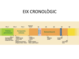 Les guerres entreRoma i Cartago pel domini del Mediterrani occidental van tenir com a escenari la península Ibèrica.Els cartaginesos van dominar el sud-est peninsular. Cartago Nova (Cartagena) va ser la capital. D’allí van marxar amb un exèrcit a conquerir Roma i, pel camí, van atacar la ciutat de Sagunt, aliada dels romans.És així com es va iniciar la segona guerra púnica: els romans van desembarcar a Empúries amb l’objectiu de venjar la presa de Sagunt i de tallar el contacte entre Anníbali les seves bases.La conquesta d’Hispània es va allargar durant dos-cents anys (218 aC a 19 aC). Hi podem distingir quatre fases.