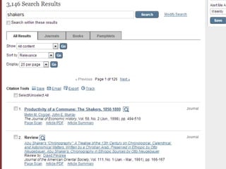 This document provides information about researching for a history class at Mercer University, including contact information for the liaison librarian, Florence Tang. It defines reference librarians and their role in helping students find information. It outlines the reference desk hours and encourages starting research early due to limitations of online and off-hours access. The document describes different types of information sources like books, journals, magazines, and websites, and provides tips on evaluating their scholarly rigor. It instructs students on using the library catalog and databases to find books and journal articles, respectively, and how to determine if full-text is available or if interlibrary loan is needed. The document concludes with reminders about citing sources and restrictions on article access.