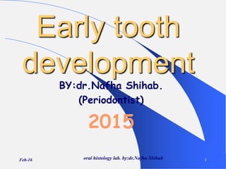 The document discusses the morphological stages of early tooth development which include the dental lamina, bud stage, cap stage, and bell stage. It describes the key events and structures that develop during each stage, including the formation of the enamel organ, dental papilla, and dental sac. The bud stage involves proliferation of cells leading to condensation. The cap stage involves invagination of the enamel organ. The bell stage involves continued growth and differentiation of cells into ameloblasts and odontoblasts that will form the enamel and dentin. Transitory structures like the enamel knot, enamel cord, and enamel niche are also discussed.