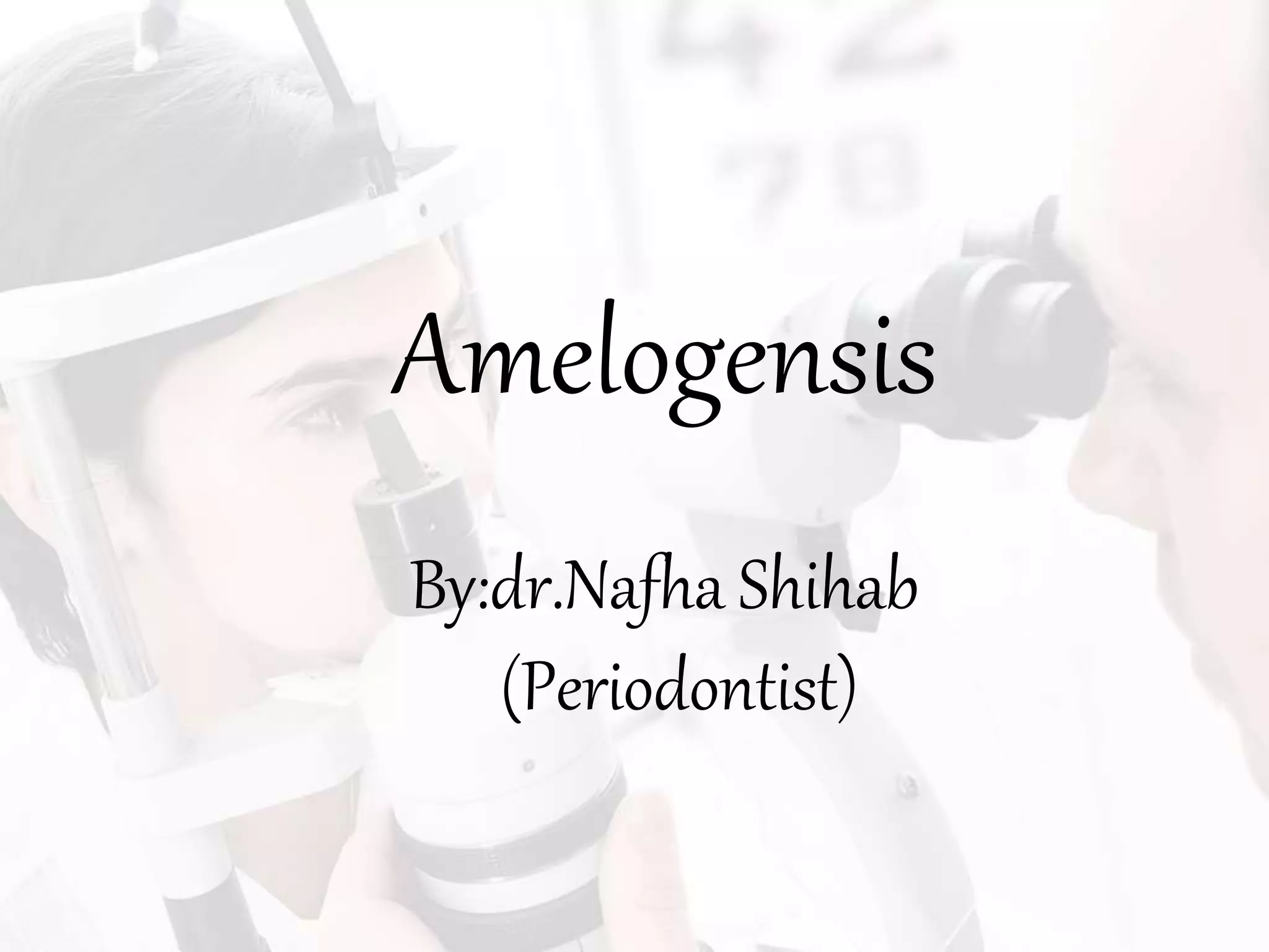 Amelogensis is the process of enamel formation. It occurs in four main phases: morphogenic, secretory, maturation, and protective. In the morphogenic phase, inner enamel epithelial cells interact with dental papilla cells to determine tooth shape. In the secretory phase, ameloblasts secrete enamel matrix proteins and minerals to form enamel rods. During maturation, the enamel mineralizes further as proteins are removed. In the protective phase, ameloblasts become cuboidal cells that protect the enamel surface from the dental sac until eruption.