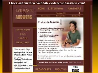 The document discusses evidence for the historical reliability of the gospels, addressing claims from liberal scholars and popular books like The Da Vinci Code. It presents evidence that the gospels were written early, within the lifetimes of eyewitnesses, and examines early manuscript evidence, testimony from church fathers, and corroboration from Jewish and Roman sources. Archaeology has also upheld the accuracy of details in the gospels.