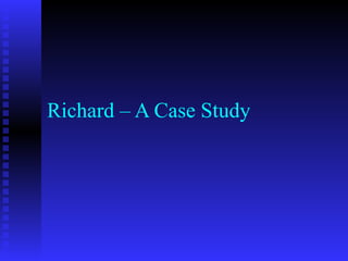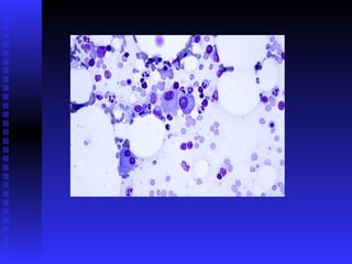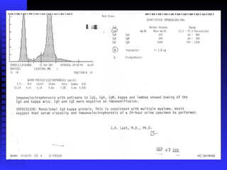 Richard, a 51-year-old male, presented with epigastric distress, weight loss, anemia, and renal failure. Bone marrow testing revealed he had multiple myeloma, a cancer of plasma cells which produces monoclonal proteins that can cause organ and tissue damage. He was diagnosed based on his bone marrow containing over 20% plasma cells and laboratory findings showing monoclonal proteins. Multiple myeloma is typically treated with chemotherapy like melphalan and prednisone or stem cell transplants, though newer agents like thalidomide and bortezomib have improved outcomes in some patients.