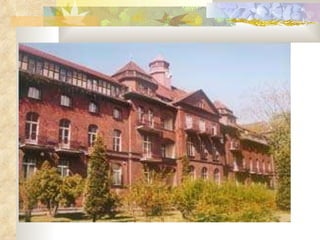 Sanatorium Przeciwgruźlicze Pawilonsanatoryjny budowano 11 lat (1887-1898). Od 1908 do 1913 roku trwała nadbudowa III-go piętra tego budynku. Od 1949 roku mieści się w nim sanatorium przeciwgruźlicze.