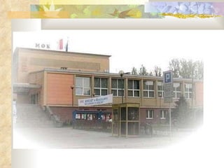Miejski O środek Kultury "Centrum" w Wodzis ł awiu Ś l ą skim Miejski Ośrodek Kultury "Centrum" w Wodzisławiu Śląskim Wodzisławski Miejski Ośrodek Kultury „Centrum” od kilkudziesięciu lat zajmuje się rozpowszechnianiem kultury wśród mieszkańców miasta i powiatu oraz promowaniem amatorskiego ruchu artystycznego. Odbywa się tam wiele interesujących imprez muzycznych i teatralnych. Zespoły amatorskie działające przy MOK-u już na stałe wpisały się do tradycji kulturalnej miasta, a nawet stały się jego wizytówką odnosząc wiele sukcesów w kraju i za granicą. Wśród zespołów tych wyróżniają się grupy taneczne „MIRAŻ”, „IMPULS”,