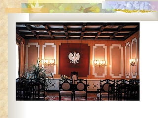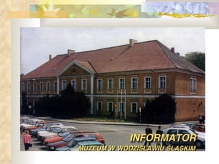 Pałac klasycystyczny zlat 1742-1745, obecnie Muzeum Regionalne i Urząd Stanu Cywilnego Zamek w Wodzisławiu Śląskim Pierwszy zamek wodzisławski został prawdopodobnie zbudowany z fundacji książęcej w samych początkach istnienia miasta około 1257 r. Wcześniej prawdopodobnie na terenie tzw. Starego Wodzisławia lub Grodziska znajdował się gród obronny zniszczony przez Tatarów w 1241r. Pierwszy zamek wodzisławski okres swej świetności miał w XVI wieku. W XVII wieku wokół Wodzisławia toczyły się działania wojenne związane z 30-letnia. W wyniku tych działań zamek wodzisławski został w 1648 zburzony przez Szwedów. Odbudowany, nie odzyskał już jednak swej dawnej świetności.