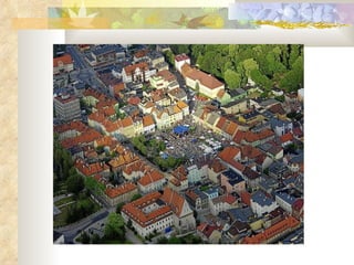 Obiekty Zabytkowe Rynekstaromiejski - plan rynku z XIII wieku Kościół parafialny pod wezwaniem Wniebowzięcia Najświętszej Marii Panny Kompleks pominorycki XIII wiek - kościół oraz klasztor - obecnie budynek Sądu Rejonowego Pałac z XVIII wieku - obecnie Muzeum i Urząd Stanu Cywilnego Pawilon sanatoryjny XIX wiek Budynek Urzędu Miasta XIX wiek Baszta Rycerska - Wieża Romantyczna XIX wiek Dom Rekolekcyjny w Kokoszycach XVIII wiek Dwór w Jedłowniku XIX wiek - obecnie Dom Opieki Społecznej