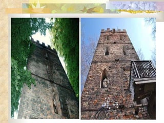 Baszta Rycerska wWodzisławiu Śląskim Baszta Rycerska w Wodzisławiu Śląskim inaczej zwana też Wieżą Romantyczną . Neogotycka około 20 metrowa baszta wybudowana w latach 1867-1868 w lesie miejskim na historycznym Grodzisku przez ówczesnego właściciela miasta, zagorzałego romantyka Edwarda Braunsa. Nie nacieszył się nią zbyt długo ponieważ zmarł w 1881 roku czyli 13 lat po jej wzniesieniu. W 1925 roku właścicielami baszty oraz przyległego terenu zostali Stefan Krzystek i Jan Kowol - wodzisławscy kupcy. Utworzyli z niej punkt widokowy oraz restaurację co wiązało się z jej kapitalnym remontem. Wg ówczesnej księgi pamiątkowej wspięło się tam pierwszego dnia otwarcia aż 338 osób. W 1938 roku baszta zaczęła popadać w ruinę, i tak było do 1991 roku kiedy staraniem Towarzystwa Miłośników Ziemi Wodzisławskiej basztę odrestaurowano i utworzono punkt widokowy. W czerwcu 2004 roku baszta została podpalona przez nieznanych sprawców i obecnie popada w ruinę.