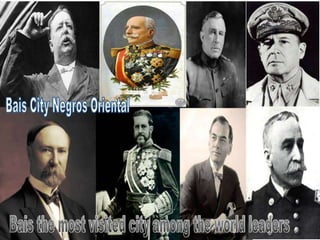 3) The document highlights traditions, culture, tourism developments, and prominent political and community figures that have shaped Bais City over the centuries.