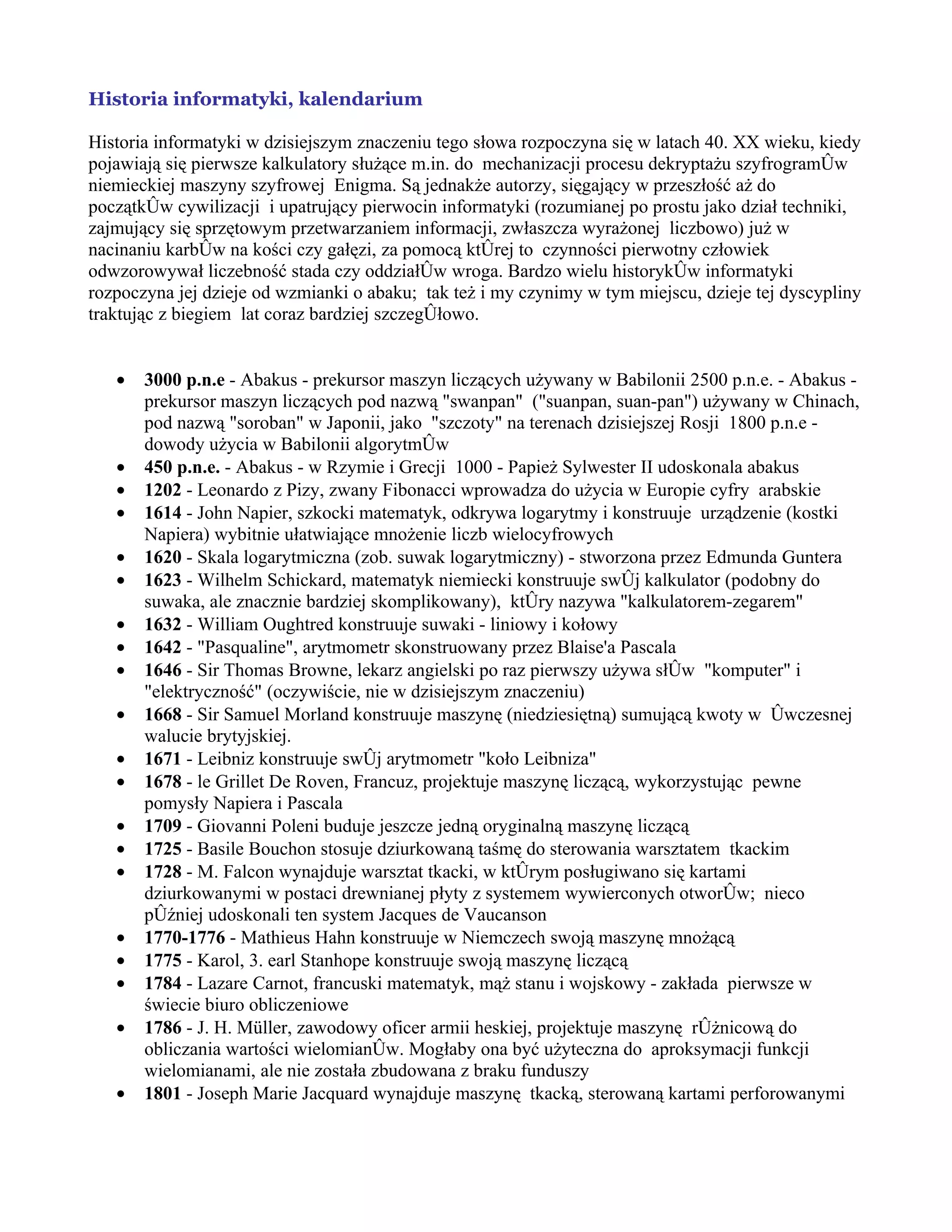 • 1623 - Wilhelm Schickard, matematyk niemiecki konstruuje swój kalkulator (podobny do