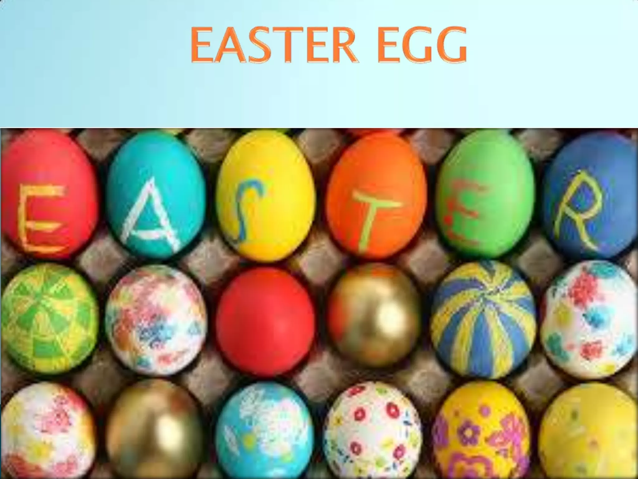 The practice of decorating eggshells dates back over 60,000 years when ostrich eggs with engraved designs were found in Africa. Decorated ostrich eggs and representations were commonly placed in ancient Sumerian and Egyptian graves over 5,000 years ago. The custom of the Easter egg originated with early Christians in Mesopotamia who stained eggs red in memory of Christ's blood at crucifixion. In Eastern Christian churches, Easter eggs are dyed red to represent Christ's blood and the hard shell symbolizes the sealed tomb, cracking symbolizes resurrection. Eggs are traditionally used up before Lent begins in Western Christianity and are forbidden during Lent.