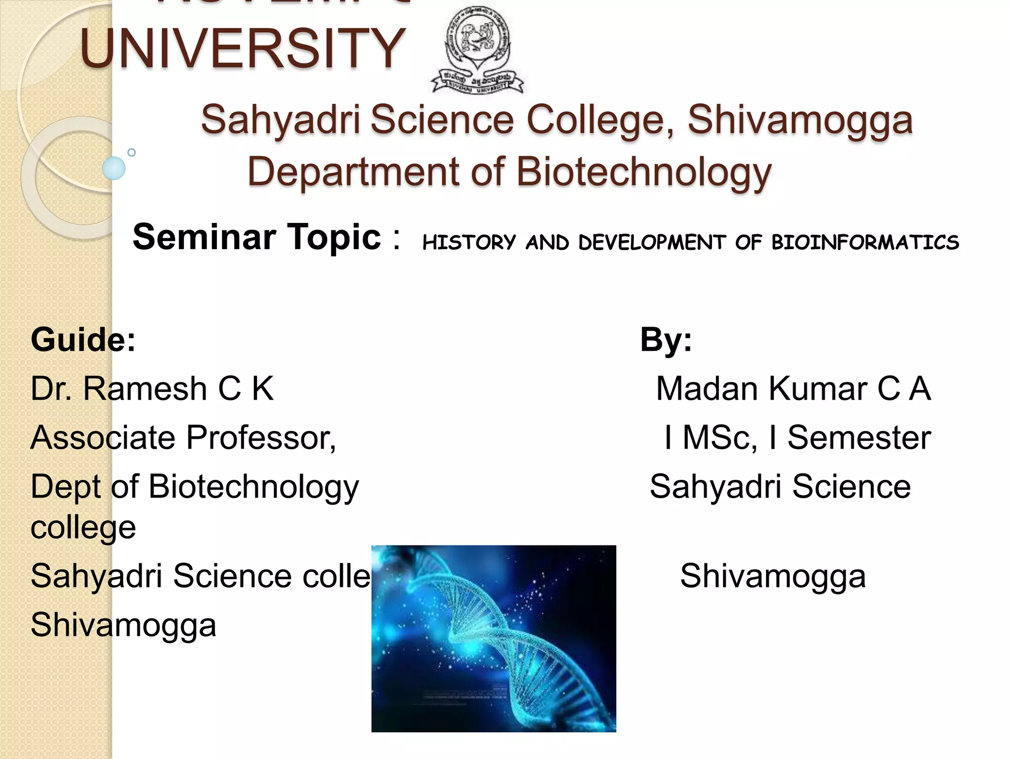 The document discusses the importance and scope of bioinformatics, highlighting its role in managing biological data in the post-genomic era. It outlines the history of the field, beginning from the early studies in the 1940s to the establishment of major databases in the 1980s. Applications of bioinformatics are focused on genomics, transcriptomics, and proteomics, emphasizing its significance in biomedical research.