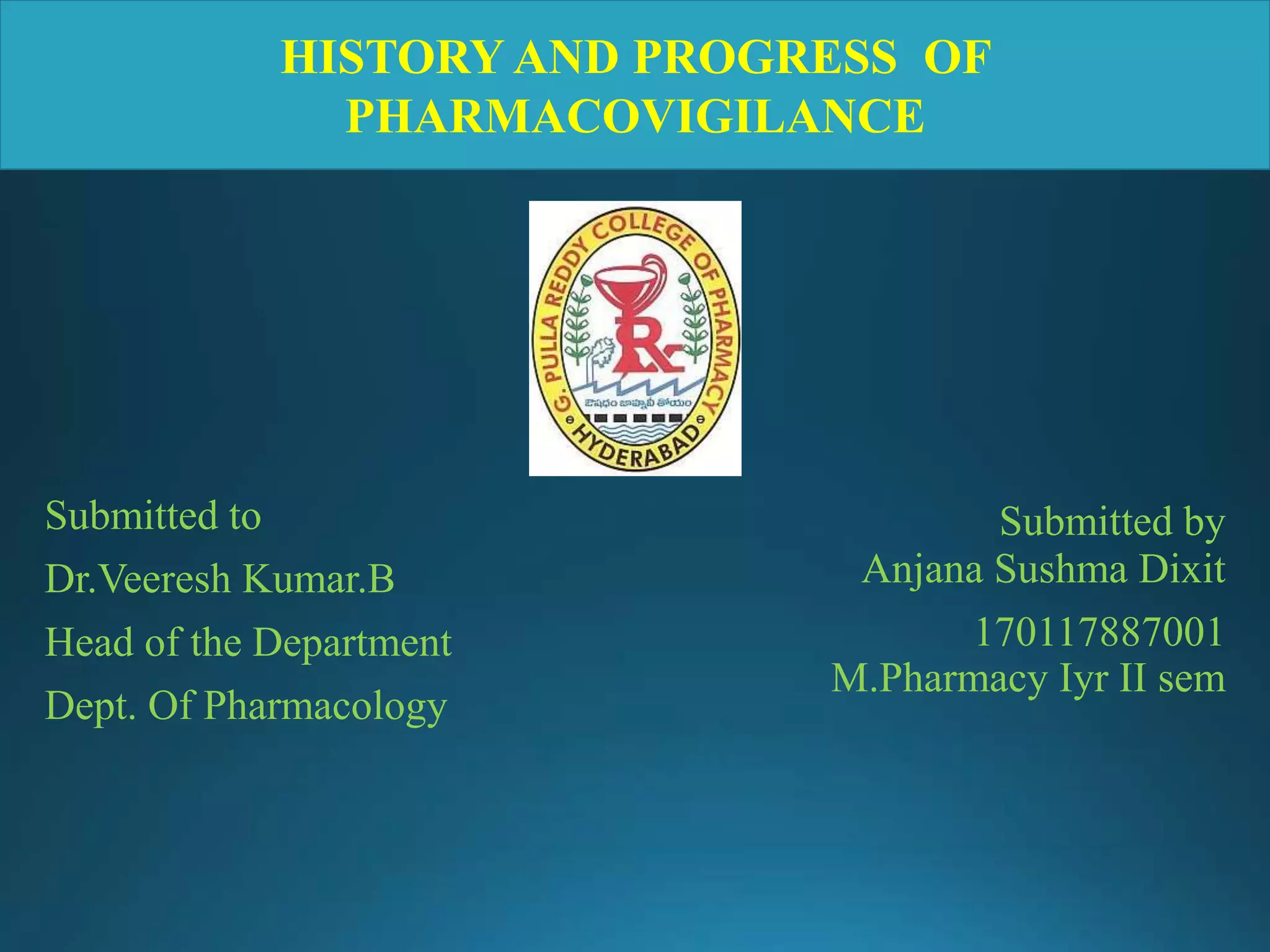 Pharmacovigilance aims to detect, assess, monitor, understand, and prevent adverse drug reactions. It has evolved over time in response to drug safety issues. Key events include the Thalidomide disaster in the 1960s which led to clinical trials, and the establishment of reporting systems in the UK, US, and Europe. India launched its national pharmacovigilance program in 2010 to monitor adverse drug reactions, but progress in expanding monitoring centers has been slow. Increased funding and commitment are needed to fully establish nationwide pharmacovigilance in India.