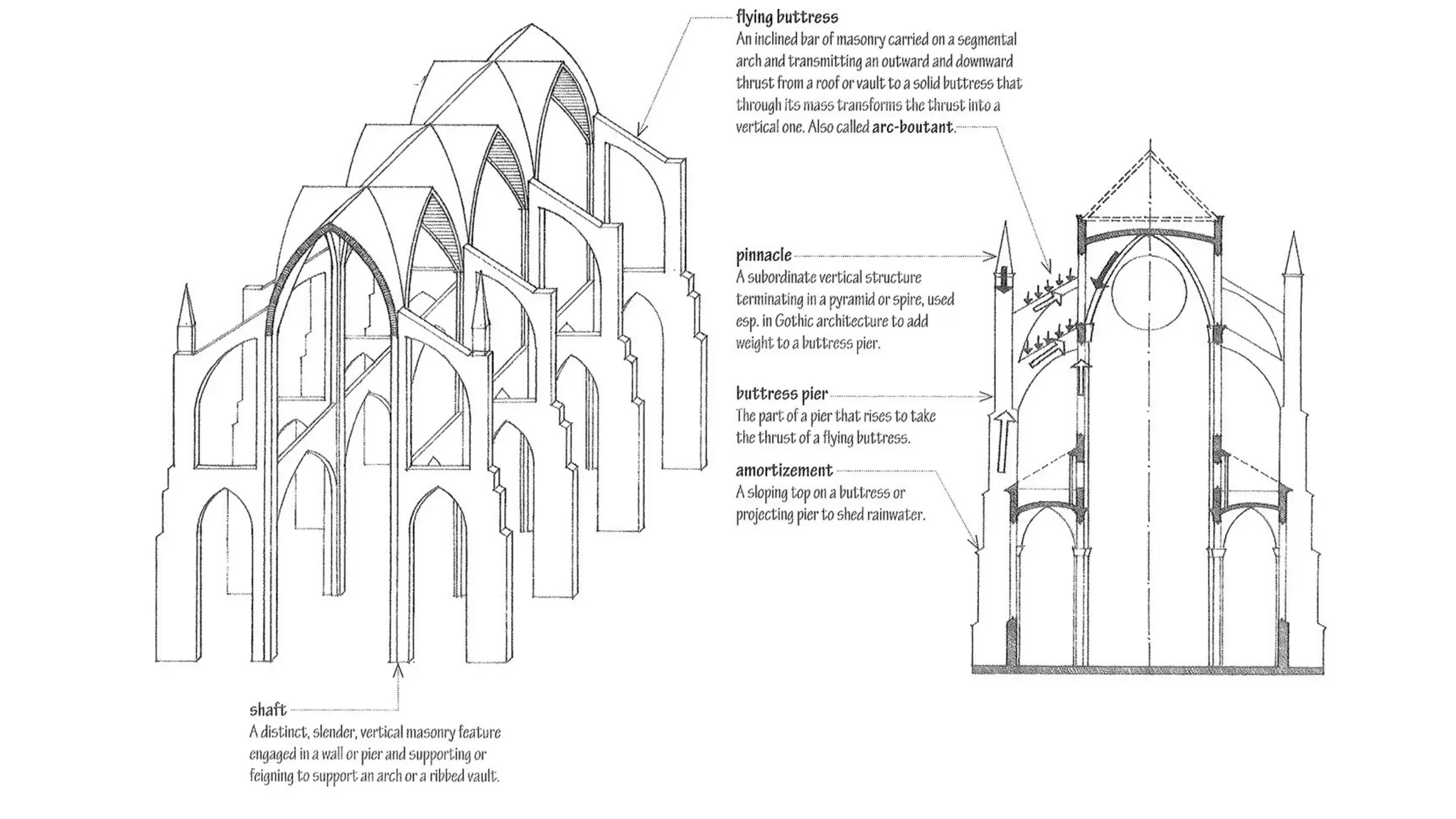 pedestals supporting a barrel vault.