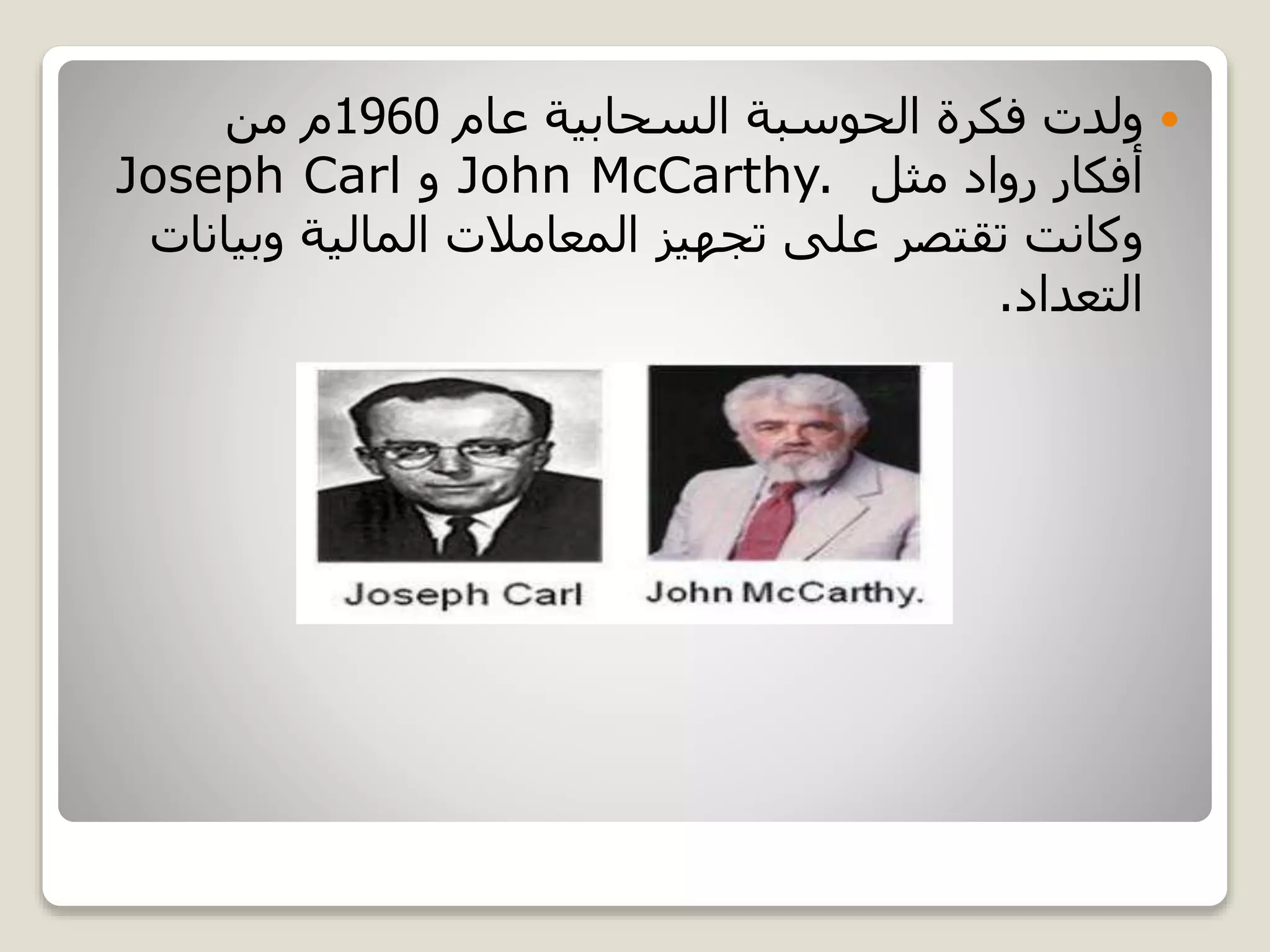 تعتبر الحوسبة السحابية وليدة أفكار رواد مثل جون مكارثي، حيث ظهر مصطلح 'الحوسبة السحابية' لأول مرة في عام 1979. تطورت هذه الفكرة بشكل فعلي في التسعينيات مع ظهور خدمات مثل Salesforce وAmazon Web Services، وبينما تصدرت جوجل المشهد السحابي في 2009 بإطلاق تطبيقاتها السحابية. تبرز أهمية الحوسبة السحابية من حيث الأمان وامتثال البيانات والحقوق الخاصة للمستخدم.