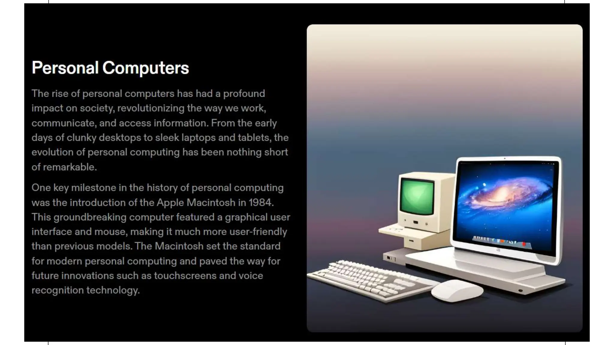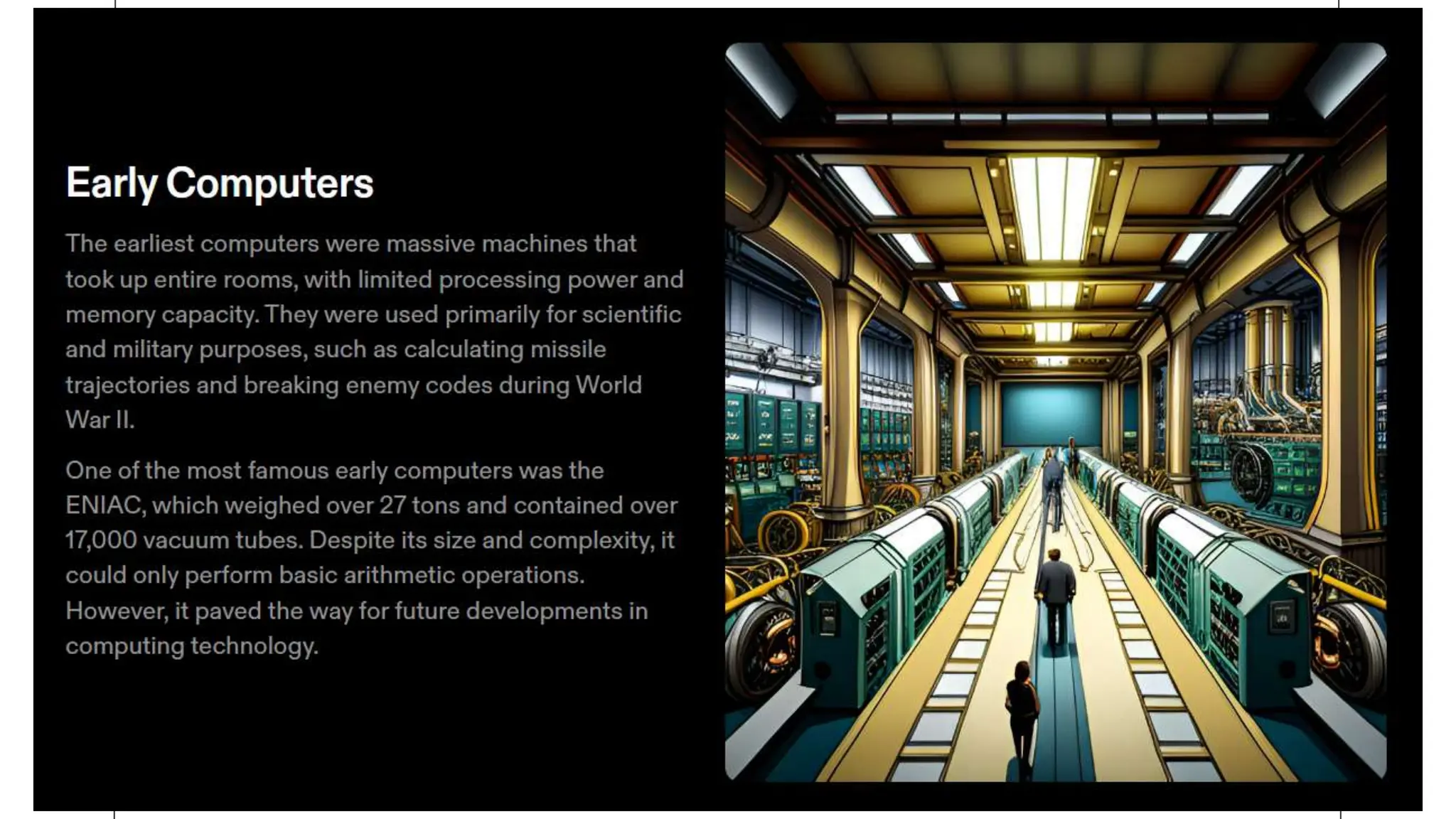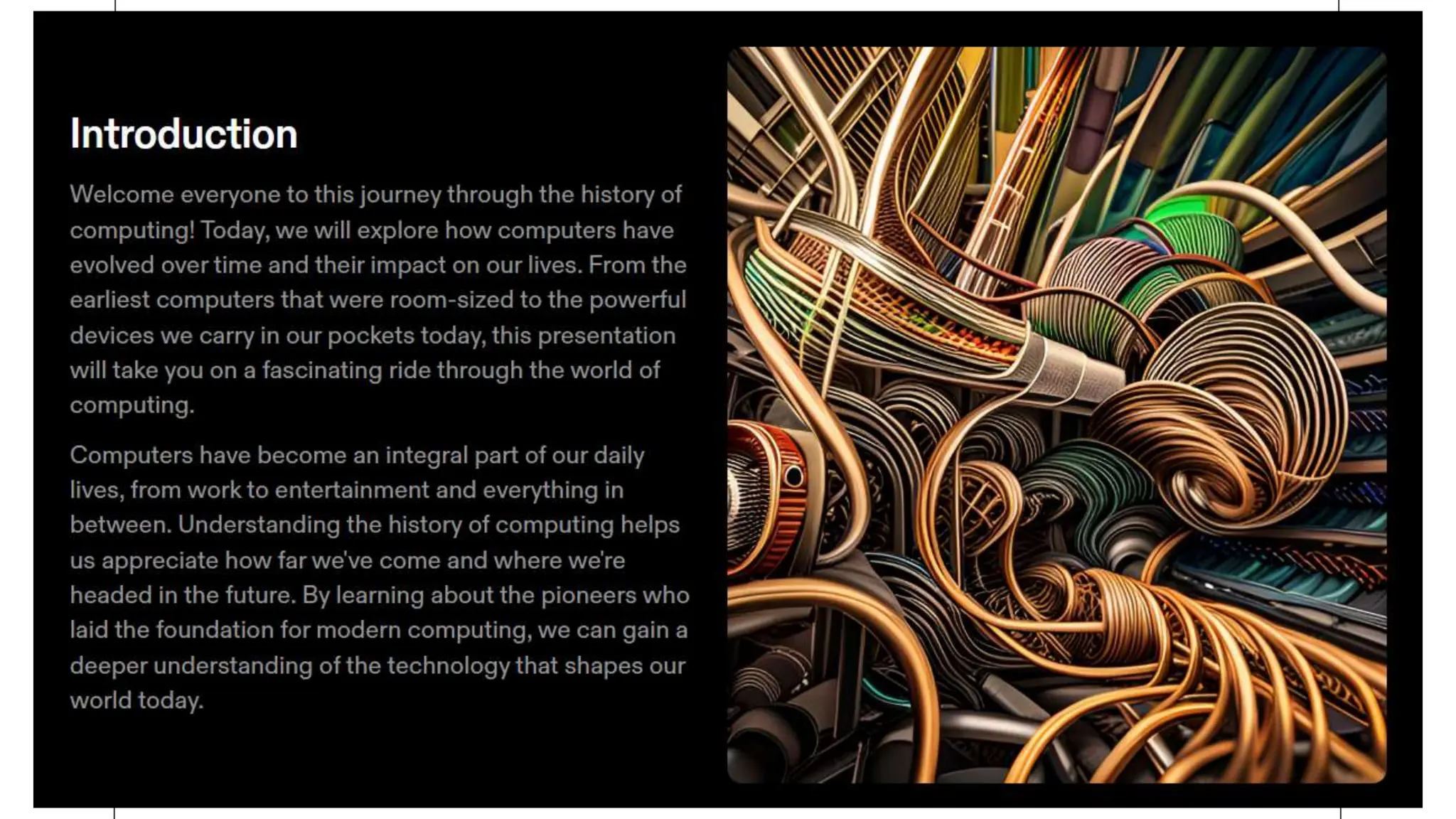 The document outlines the history of computers, beginning with ancient calculating devices and progressing through key inventions such as the abacus and the adding machine by Blaise Pascal. It details the evolution of computers from the first mechanical computers designed by Charles Babbage to the modern era characterized by microprocessors and artificial intelligence. The document highlights the transformation of computing technology over time and its impact on society.