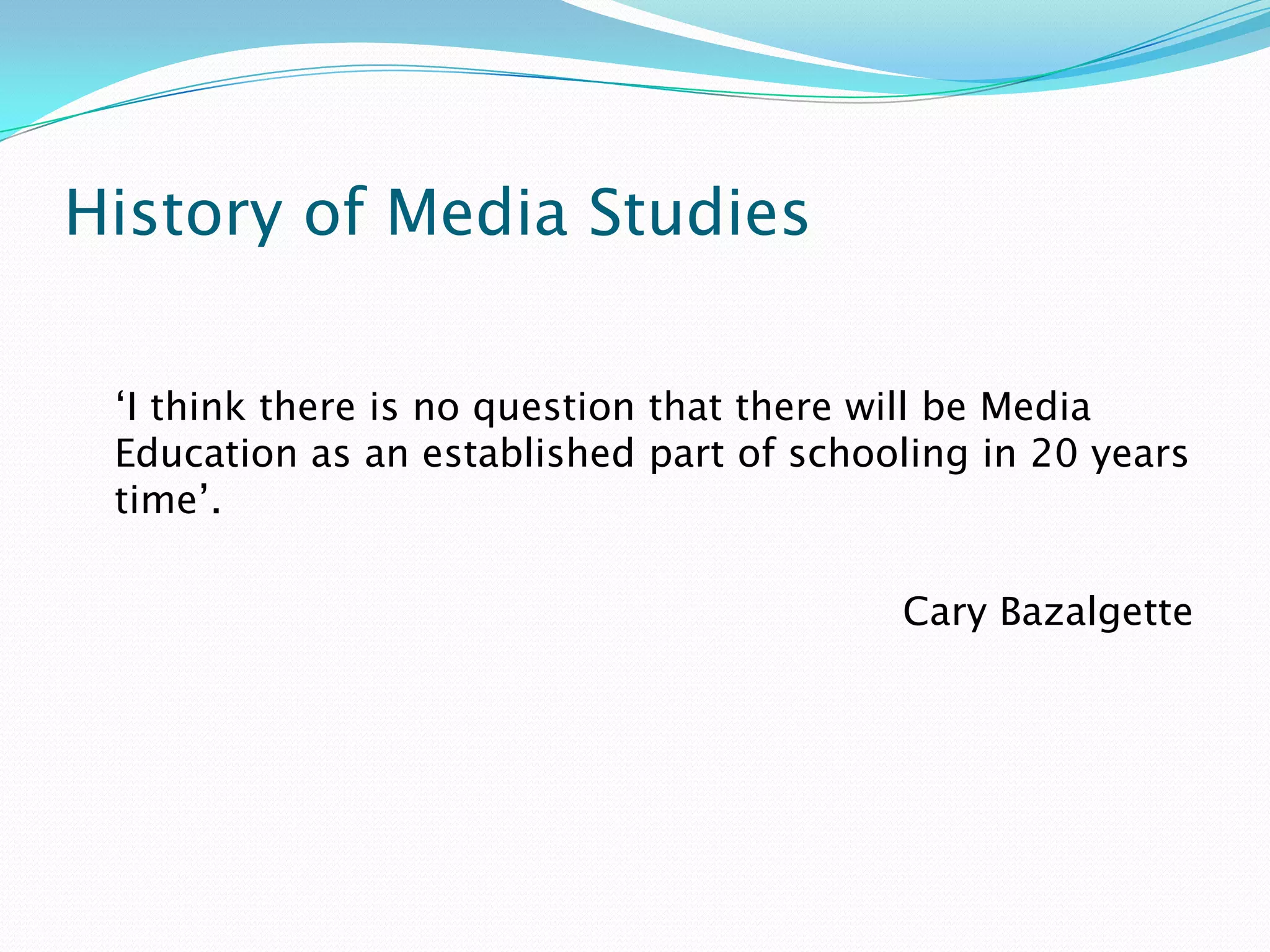 Media studies emerged in the UK in the 1960s from the academic study of English and challenged distinctions between high and popular culture. Influential journals like "Screen" were established in the 1970s. The 1980s saw developments in computing, telecommunications, and Len Masterman's influential works on teaching media. National GCSE courses in media studies launched in the 1980s/90s. The 1990s saw media studies gain recognition worldwide, though it still required justification as an academic subject. Into the 2000s, technology growth and recognition of children's media experience helped promote media education. Schools now have technologies for media production across curriculums.