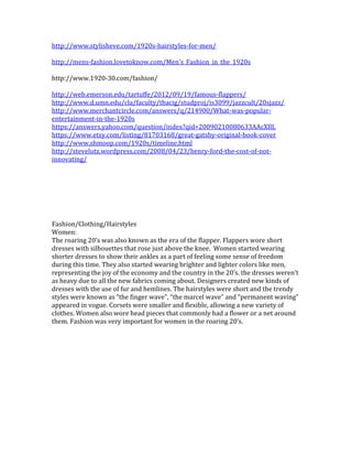 The 1920s saw major social and cultural changes in the United States following World War I. Women's fashion became more liberated with shorter dresses and hairstyles like the bob. Jazz music flourished as an African American art form. Popular leisure activities included going to movie theaters and speakeasies. Politically, Republicans controlled the presidency advocating for business over regulation. The booming economy was driven by consumerism, installment buying, and automobiles provided by Henry Ford's assembly line production. Socially, women gained independence while the Harlem Renaissance celebrated a new African American cultural identity.
