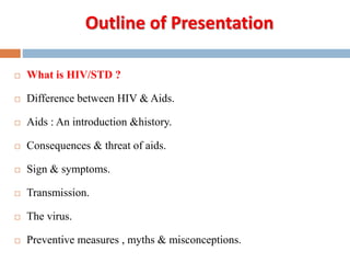 - Differences between HIV and AIDS, with HIV being the virus and AIDS being the result of HIV progression.